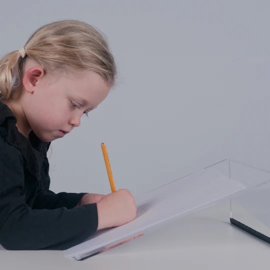 Den lutande ytan hjälper barn att hålla en korrekt kroppshållning, vilket minskar belastningen på nacke, axlar och armar. Perfekt för skolmiljöer, hemmastudier eller kreativa aktiviteter – denna transparenta platta gör det enklare och bekvämare att fokusera under längre stunder.