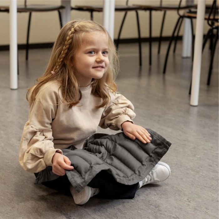 Denna tyngdfilt är idealisk för användning i klassrum, vilorum eller sinnesrum och är särskilt effektiv när den placeras i elevens knä under lektioner för att förbättra koncentrationen och studieron.