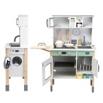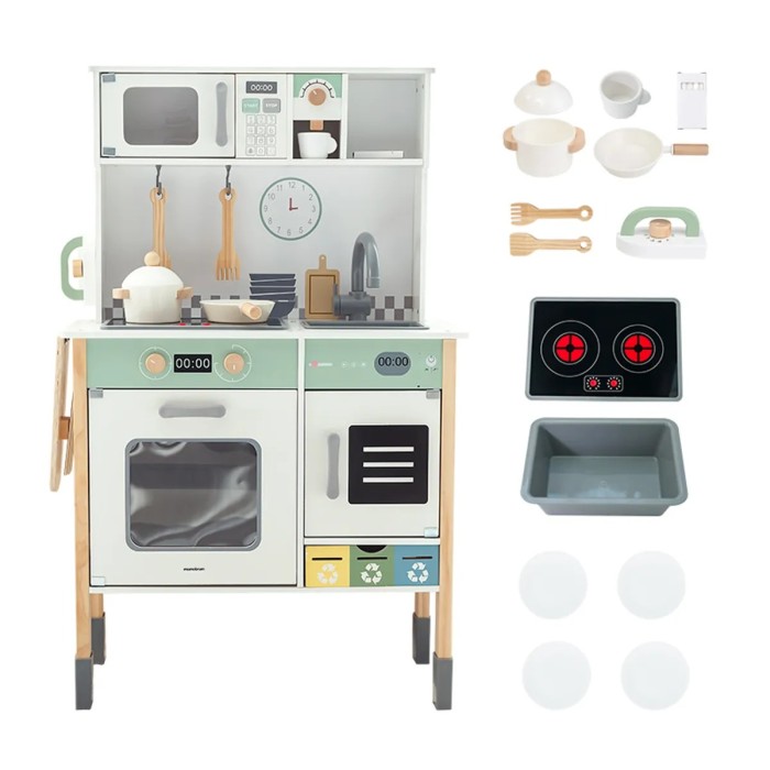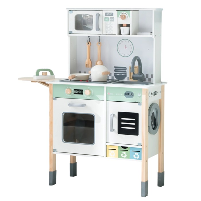 Ge ditt barn timmar av fantasifull lek med NAP leksakskök i trä. Detta stora gröna träkök (99,5 cm) är designat för att likna ett riktigt kök med spisplattor, ugn, diskho och gott om förvaringsutrymmen. Med sin stabila konstruktion i trä och fina detaljer blir det ett hållbart och stilrent tillskott i barnrummet. Perfekt för barn som älskar att leka kock, bjuda på mat eller öva på vardagliga sysslor.