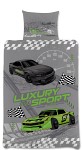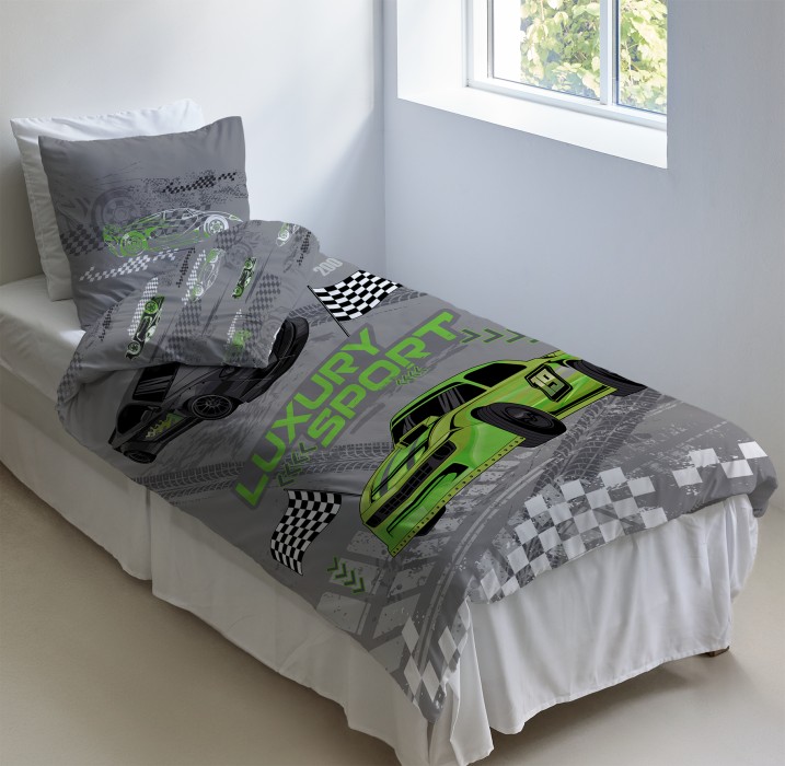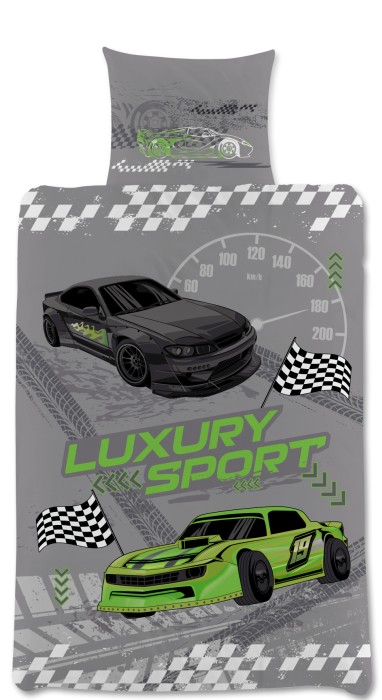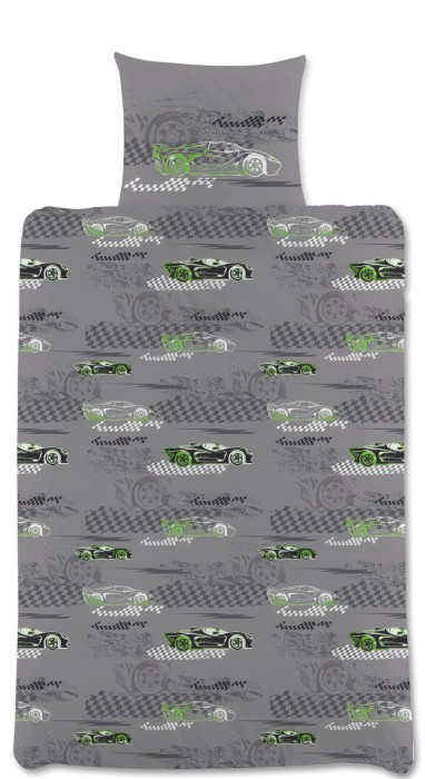Coolt påslakanset med racerbilsmotiv. Setet har ett avvikande mönster på baksidan. Perfekt för alla som älskar snabba bilar!