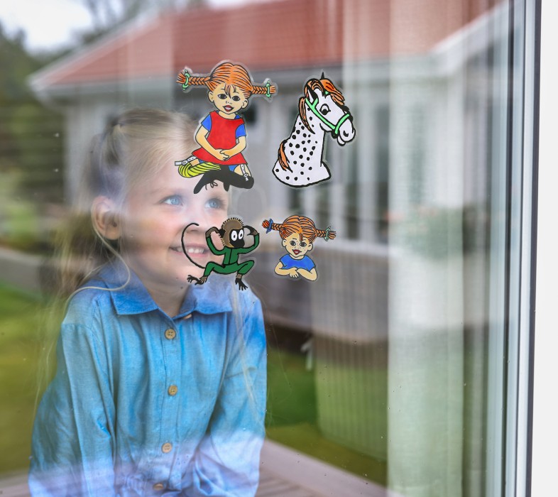 Låt barnen dekorera sina fönster med 4 olika Pippi-motiv på plastdekaler. Setet inkluderar 9 st målarfärger, så att barnen kan skapa unika och färgglada konstverk. Dekalerna är lätta att fästa på fönster eller glasytor och kan enkelt flyttas utan att lämna märken eller limrester. Det är både enkelt och roligt att använda, vilket gör det till en kreativ och underhållande presentidé för alla Pippi-fans.