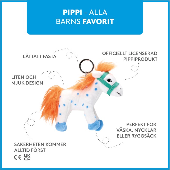 Lägg till en lekfull och personlig detalj på din väska eller nyckelknippa med Pippi Långstrump Nyckelring, prydd med den älskade hästen Lilla Gubben!
