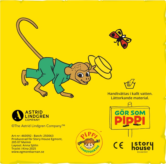 Följ med Pippi och hennes vänner på en rolig utflykt! Mjuk tygbok med prassliga sidor, perfekt för små barn som vill upptäcka med händer och ögon.