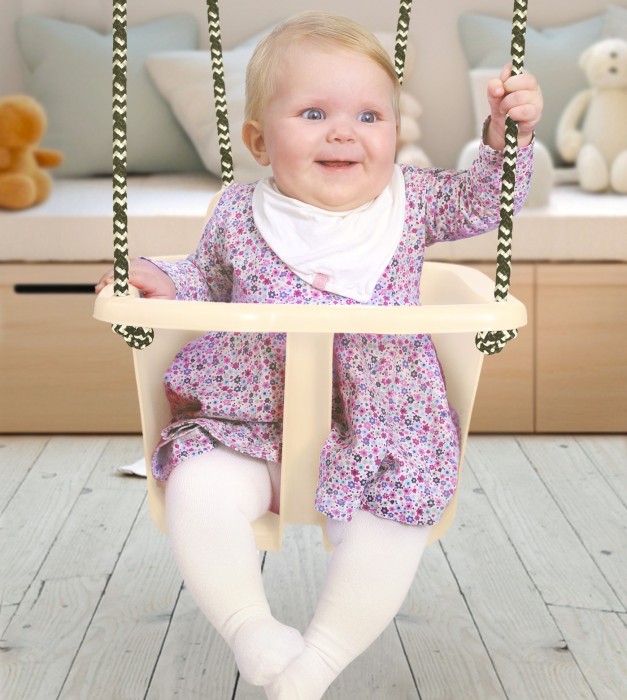 Gungan är beige med tvåfärgat rep och är godkänd för 30 kg. Rekommenderas från 10 månader.