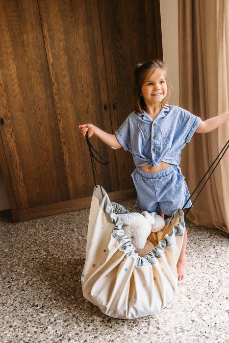 Med denna förvaringssäck från Play & Go blir det lättare att hålla reda på leksakerna! Play & Go är en lekmatta och leksaksförvaring i samma produkt. Med sin snygga utformning passar den i alla barnrum och den uppmuntrar till lek då det blir lättare att städa efteråt. Den smarta designen med snören, gör att den enkelt dras ihop till en smidig liten säck för smart förvaring när lekstunden är över.