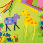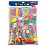 Innehåll: fem EVA-ark i olika färger, en påse EVA-djur, en påse EVA-figurer, pom pom-bollar i olika storlekar, ögon att klistra på samt piprensare i olika färger.