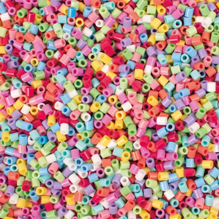 Skapa mönster på pärlplattor, gör egna smycken, bokmärken, dekorationer eller bara lek loss med färg och form. Den glada mixen innehåller toner som gul, ljusblå, hallonröd och vårgrön – en riktig boost för fantasin!
