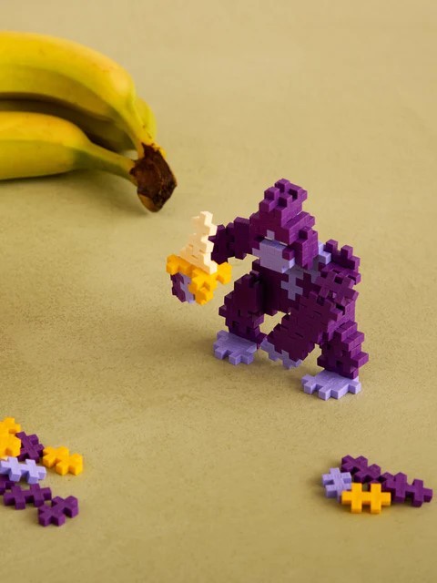 Detta set innehåller 100 hållbara Plus-Plus bitar och kommer i en praktisk, återanvändbar behållare som är perfekt för lek på språng. Följ de enkla instruktionerna för att skapa en gorilla och en banan, eller låt din kreativitet blomstra och skapa något helt eget. Plus-Plus är känt för sina högkvalitativa bitar som främjar fantasi och motorik.