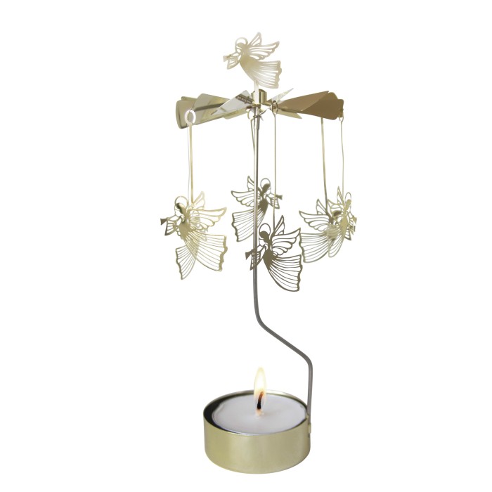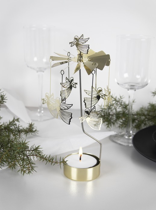 Skapa magisk julstämning med änglaspel från Pluto Design. Värmen från värmeljuset får propellern att snurra och änglarna att dansa.