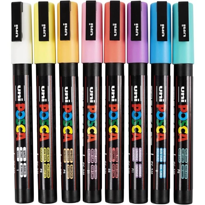 Posca Marker PC-3M spets 0,9-1,3 mm (8 st Soft Colors) är det perfekta setet för att skapa bredare linjer och utföra färgglada konstverk.