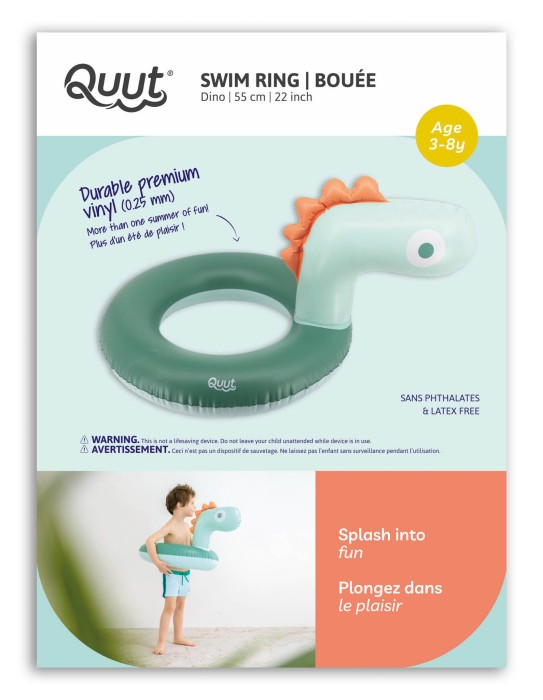 Upptäck Quut Badring Friends Dino i grönt, en hållbar och mjuk badring tillverkad i tjock vinyl (0,25 mm) för maximal komfort och långvarig användning. Quut har sedan 2012 skapat strandleksaker med fokus på hållbarhet och lekglädje. Deras produkter är ergonomiska, multifunktionella och designade för att hålla säsong efter säsong.