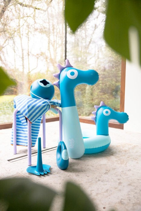 Upptäck Quut Noodle Friends Sjöhäst, en mångsidig lekkompis som kan användas både som hobbyhäst på land och som en vattenkompis i poolen. Tillverkad av tjock vinyl (0,25 mm) för extra hållbarhet och långvarig användning. Perfekta för både strandäventyr och badlekar!
