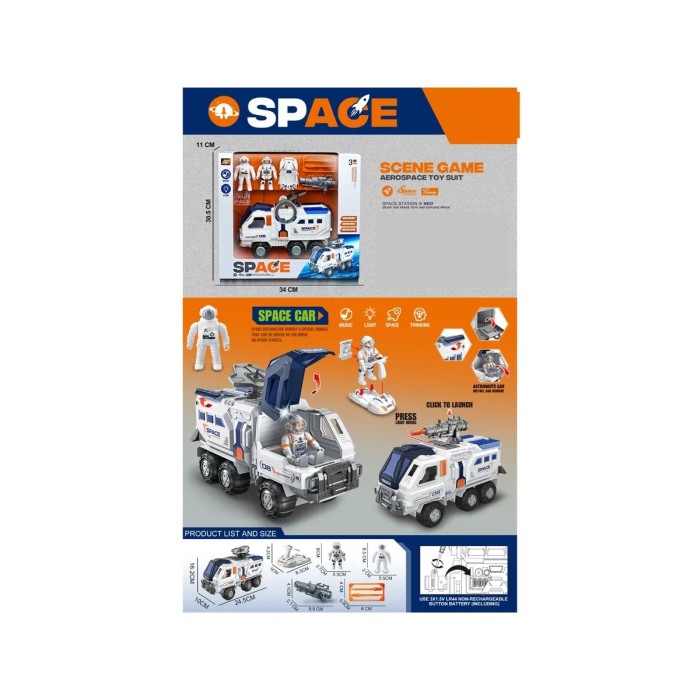 Denna interaktiva rymdleksak innehåller en rymdfärja, astronautfigurer, satelliter, signalmottagare och en rymdscooter, perfekt för barn som älskar rymd och teknik. Med ljus- och ljudfunktioner får barnen en autentisk rymdupplevelse som stimulerar fantasin och lärande. Den är tillverkad av högkvalitativt ABS-material, vilket gör den både säker och hållbar för många års lek.