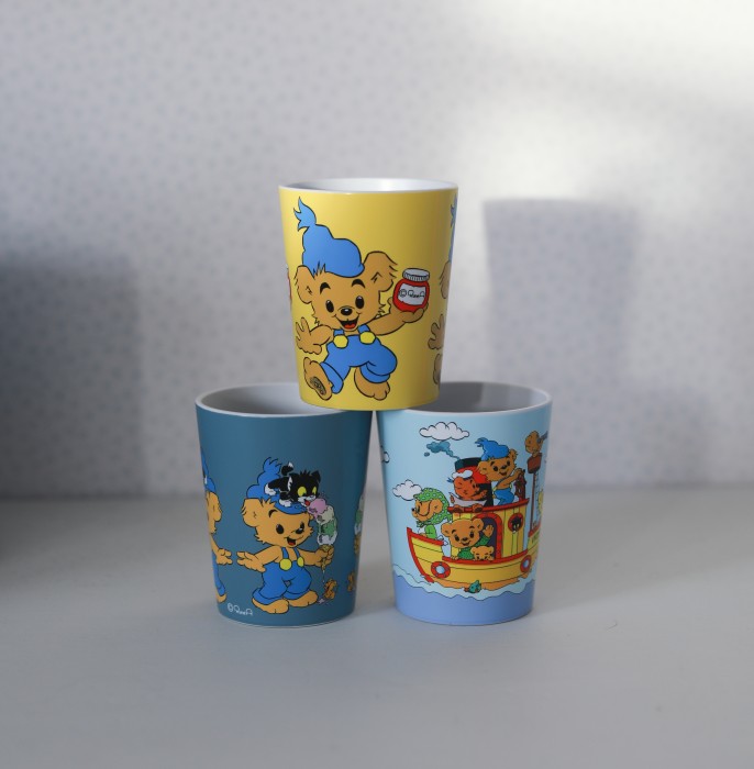 Tumblermugg med Bamsemotiv från Rätt Start. Muggen är tillverkad i RPET vilket är ett miljövänligt och tåligt material. Rätt Starts produkter i RPET bidrar till minskat avfall och lägre koldioxidavtryck.
