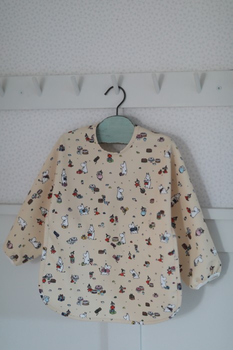 Fin och praktisk haklapp med ärm från Rätt Start med Muminmotiv.