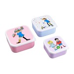 De tre lådorna är i olika storlekar och med olika motiv perfekt för snacksförvaring och bra vid både matsäck förvaring och picknik men även som förvaring till olika småsaker. Lådorna är tillverkade i tålig polypropen som är säker att använda och fri från gifter. De kan användas i mikrovågsugn (30 sek 800W) och diskas i maskin 50 grader, de tål även att förvaras i frysen med t ex matrester.