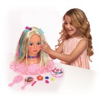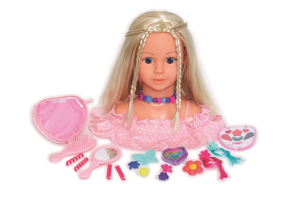 Skapa trendiga frisyrer och sminkningar med Real UniQ Blond frisör- och sminkhuvud. Setet innehåller borste, spegel, håraccessoarer och ett sminkset i ask – allt du behöver för att styla om henne om och om igen.
