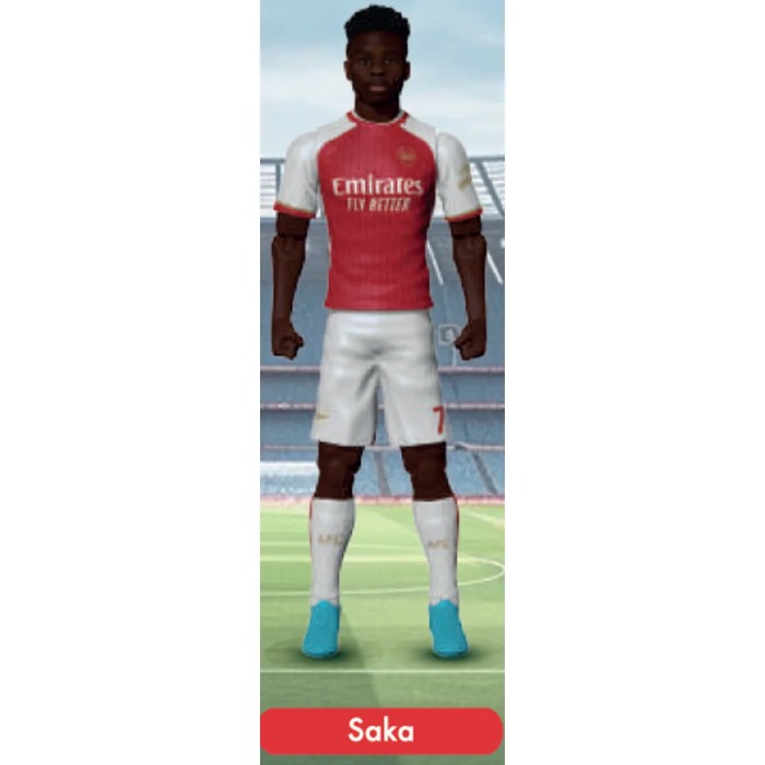 Fira en av Englands mest lovande talanger med denna Bukayo Saka-samlarfigur i Englands officiella landslagsdräkt med spelarens nummer. Figuren är cirka 20 cm hög och har 10 böjbara leder, vilket ger många möjligheter till actionfyllda poser och dynamisk lek. Den medföljande mini-fotbollen gör det enkelt att återskapa klassiska fotbollsögonblick och visar figuren på ett levande sätt i både lek och display. Med realistiska detaljer såsom klubbmärke, färger och spelarlikhet är detta ett måste för alla fotbollsälskare och samlare.