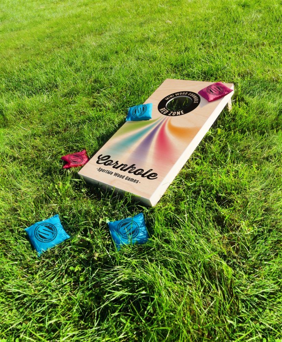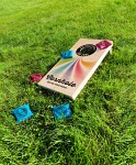 - Kompakt cornhole-spel i trä (60 x 30 cm)