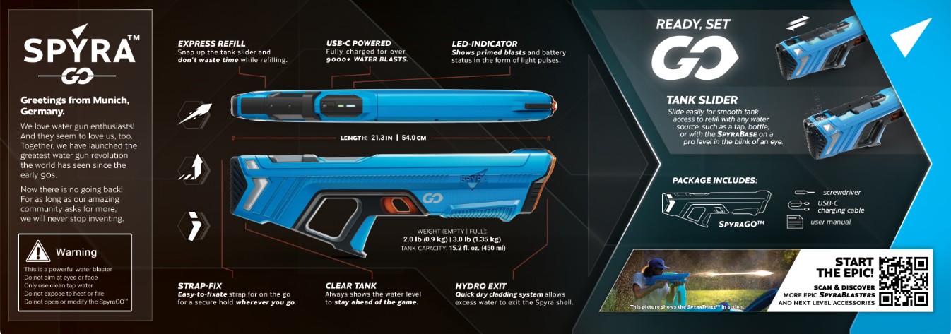 Upptäck Spyras standardmodell, en lätt, snygg och kraftfull vattenpistol som tar vattenkrig till nästa nivå!