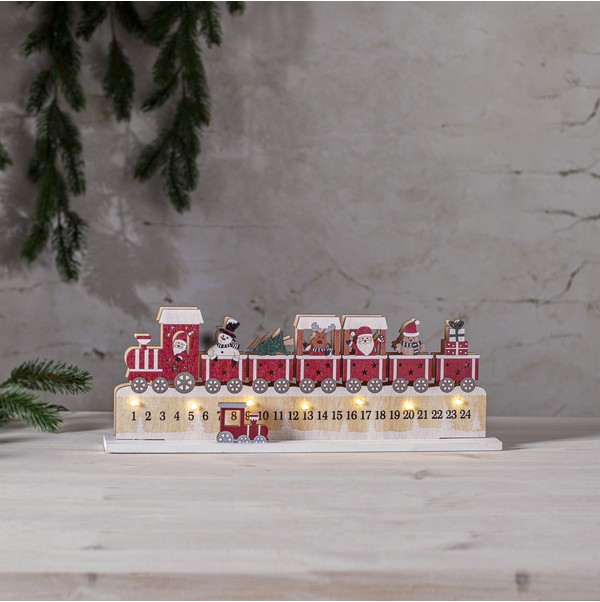 Julkalender från Star Trading, charmigt tåg med LED-belysning för magisk adventsstämning