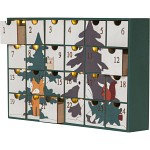 Skapa magisk julstämning med denna dekorativa adventskalender i laserskuret trä. Motivet föreställer en räv och uggla som väntar på sina vänner, medan björnen och ekorren kommer bärande på granen till julfirandet.