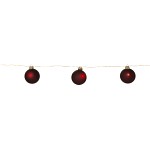 Vacker batteridriven ljusslinga med 8 st röda glaskulor från Star Trading. Mässingsfärgad slinga med små ljuspunkter i varmvit LED. Perfekt för tex bordsdekoration och julgransbelysning och ger en härlig stämning i hemmet.