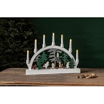 Små LED-lampor lyser upp scenen och sprider ett mjukt och stämningsfullt ljus, perfekt som bordsdekoration eller fönsterprydnad under hela julen. Produkten drivs av batteri och har praktisk timerfunktion för enkel användning utan sladdar.