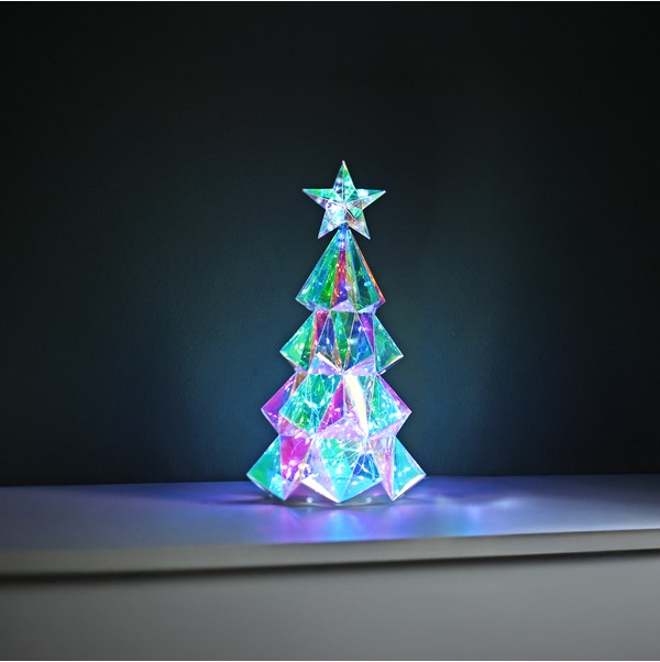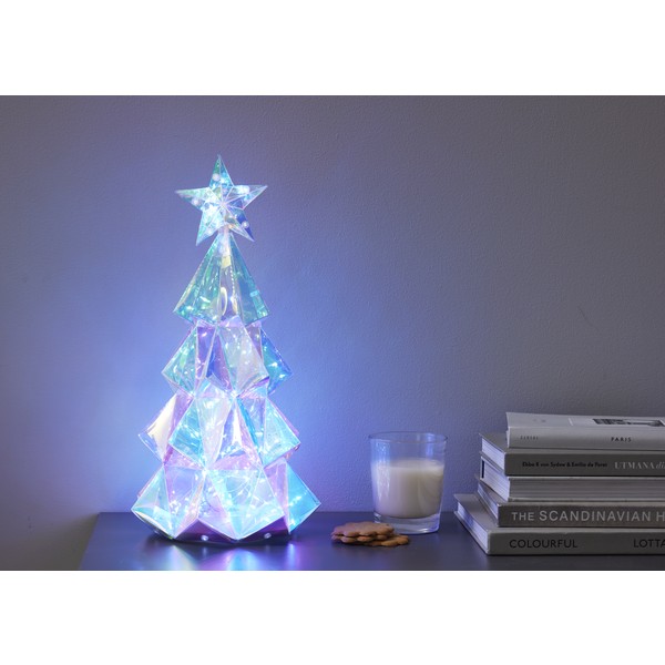 Skapa en magisk och färgstark jul- eller vinterstämning med denna regnbågsfärgade LED-gran. Granen skimrar och glänser vackert, medan den inbyggda LED-ljusslingan med små punkter sprider ett varmt och dekorativt ljus när den är påslagen.