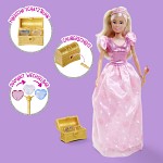 Ge dig ut på ett magiskt äventyr med Steffi Love som prinsessa. Hon bär en vacker prinsessklänning, har en gnistrande spira och en skattkista fylld med diamanter som gör leken extra spännande.