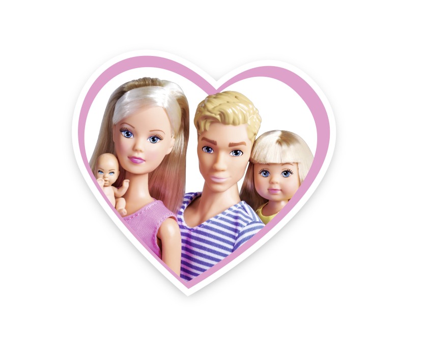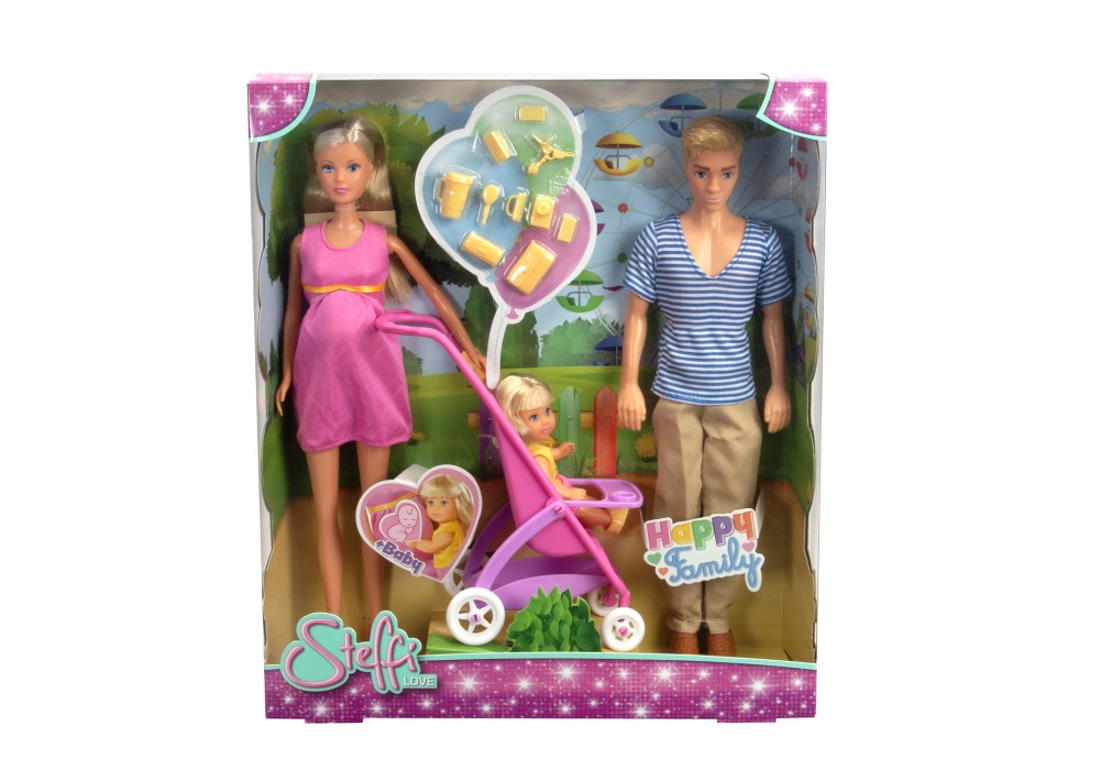 - Innehåll: Steffi-docka, Kevin-docka, Evi med barnvagn, Bebisdocka, Hårborste, Mugg.