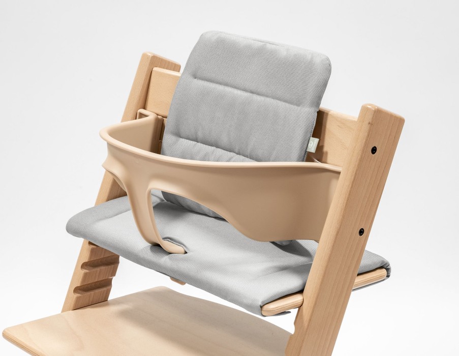 Tripp Trapp-dynan passar alla Tripp Trapp-stolar, både med och utan baby set och ger extra komfort, stöd och stabilitet för ditt barn. Den mjuka vadderingen gör sittstunden skönare, medan den formsydda designen ger en nära och säker passform.