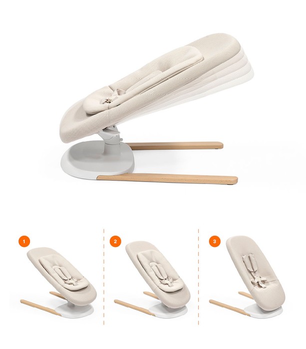 - Ergonomisk design: Utformad i samarbete med fysioterapeuter för att främja en hälsosam kroppshållning. Sitsen är utrustad med en avtagbar kudde som ger extra stöd till nyfödda.