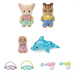Leksetet innehåller tre bebisar: fennekbebisen Yulie, ekorrbebisen Ambrose och utterbebisen Nicola, tillsammans med roliga tillbehör för simlekar. Den uppblåsbara delfinen och poolleksakerna ger timmar av lek och skoj i poolen. Bebisarna har söta baddräkter med vågmönster och knappar, och de kan använda poolleksaker och glasögon under leken.