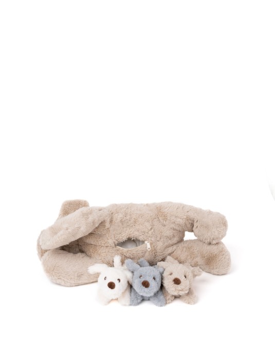 Teddykompaniet Hund med valpar i magen 50 cm är en mjuk och lekfull hund som har tre små valpar gömda i magen, vilket gör den till en interaktiv och fascinerande leksak. Perfekt för barn som älskar djur och roliga överraskningar, och en härlig present för alla åldrar!