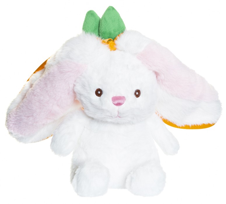 En mjuk liten kanin som gömmer sig i ett färgglatt fodral format som en morot. Den praktiska dragkedjan gör det enkelt att både leka med kaninen och förvara den tryggt. En charmig och rolig leksak som passar perfekt för barn.