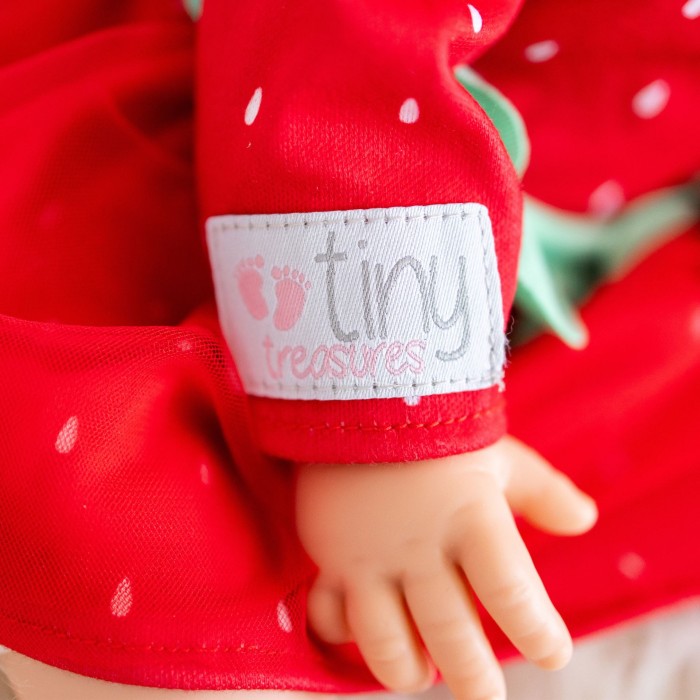 Tiny Treasures Jordgubbsdockklädset ger din docka en charmig och lekfull stil!