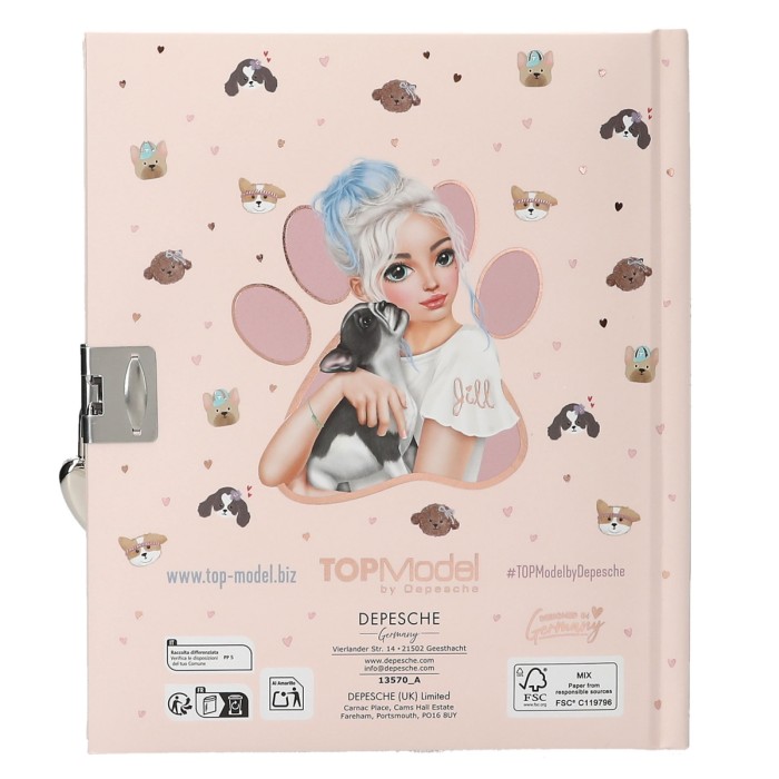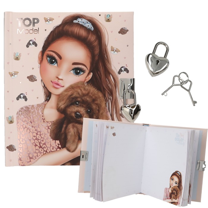 TOPModel Dagbok med hjärtlås (Doggy) är den perfekta platsen för att skriva ner dina tankar, drömmar och hemligheter.