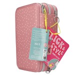 Detta mörkrosa trippelpennfodral från TOPModel Juicy-serien är både praktiskt och oemotståndligt sött! Med glada orange prickar och en gosig apa med sin lilla apunge på ryggen blir det snabbt en favorit i skolväskan.