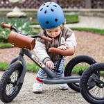 Med sin retrodesign och matta vintageblå färg matchar den perfekt Trybike löparcyklar och ger en enhetlig look. Hjälmen är justerbar och passar barn med huvudstorlekar mellan 45 och 51 cm. Den har ett hakband och ett skruvspänne i nacken som gör det enkelt att anpassa passformen för bästa komfort och säkerhet. Förslutningen sker med ett praktiskt metallspänne, vilket gör det snabbt och enkelt att ta på och av hjälmen.