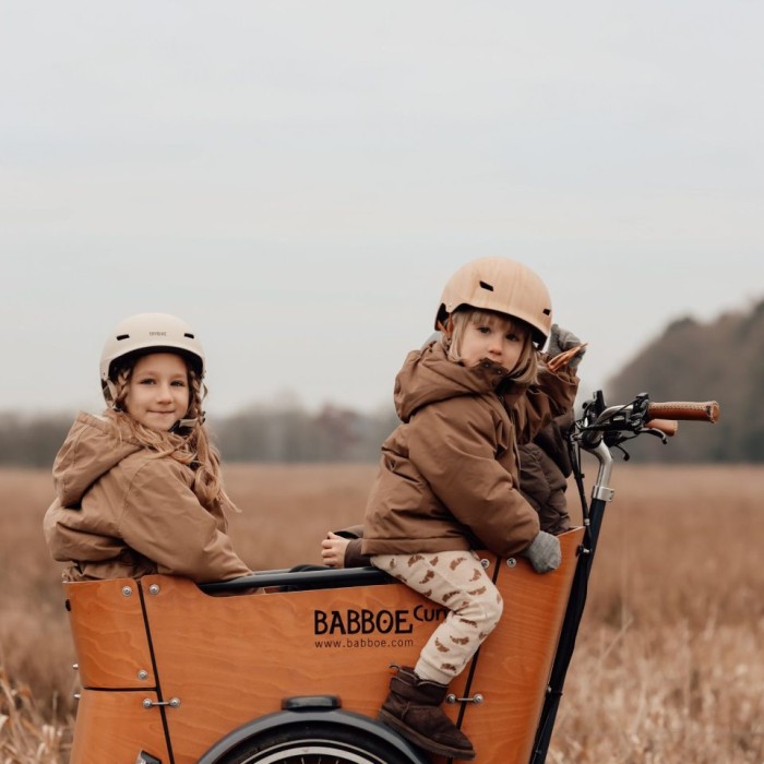 Den matt krämfärgade hjälmen har en retrolook som passar perfekt med Trybikes löparcyklar. Hjälmen är justerbar och passar barn med huvudstorlekar mellan 51 och 56 cm. Med ett hakband och ett inbyggt skruvspänne i nacken kan hjälmen enkelt anpassas för en bekväm passform. Förslutningen sker snabbt och enkelt med ett metallspänne, vilket gör att barnet lätt kan ta på och av hjälmen.