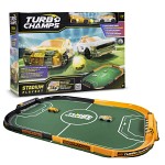 Turbo Champs Stadium Soccer är det ultimata leksakssetet för barn som älskar både racing och fotboll! Denna spännande kombination låter spelarna skjuta iväg sina småbilar och delta i ett fartfyllt bollspel på en stor Turbo Champs-plan som mäter 123 cm.