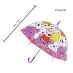 Med en längd på 66 cm och en diameter på 69 cm är det perfekt anpassat för små händer och kroppar. Den praktiska formen gör det enkelt att hålla i, och det livliga motivet förgyller varje promenad i regnet.