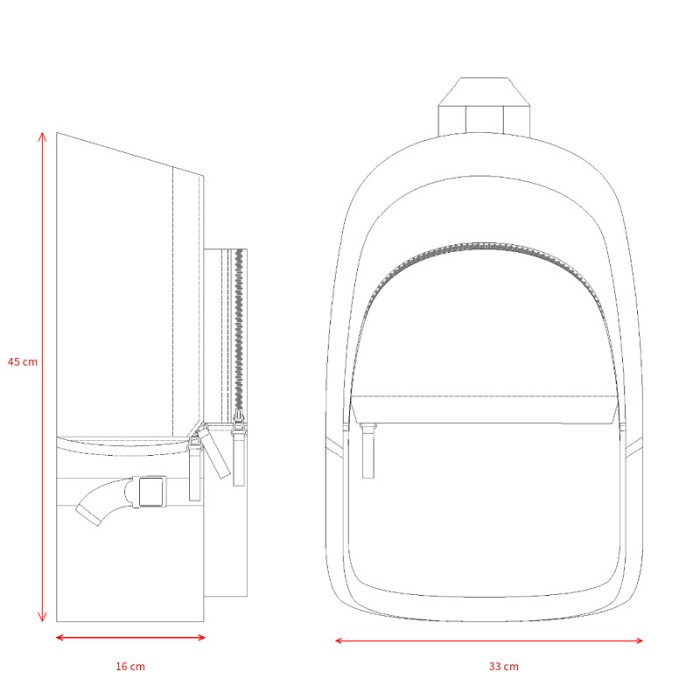 För att säkerställa komfort under användning är både axelremmarna och ryggen vadderade, och de justerbara remmarna gör det enkelt att anpassa passformen. En ögla på toppen av ryggsäcken möjliggör enkel upphängning.