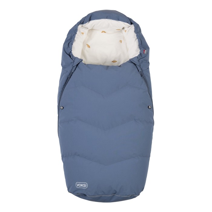 Överdelen är fylld med finaste dun som värmer ordentligt och går lätt att plocka bort vårvinterdagar när solen värmer. När kylan kommer igen dras den enkelt fast med en dragkedja.