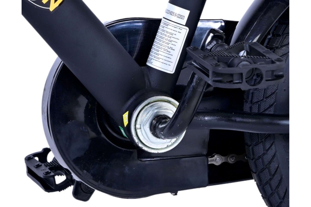 Med den här coola cykeln blir varje cykeltur en superhjälteupplevelse. Säkerheten är alltid i fokus – cykeln är utrustad med både hand- och fotbroms, slutet kedjeskydd, reflexer i pedalerna och en ringklocka. De avtagbara stödhjulen gör det enkelt för barnet att lära sig cykla på egen hand.
